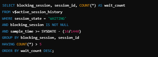 • COUNT(*) > 5 → 블로킹이 5회 이상 발생한 세션을 감지.