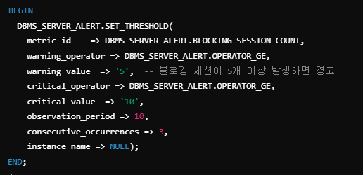 - warning_value = 5 → 블로킹 세션이 5개 이상 발생하면 경고.